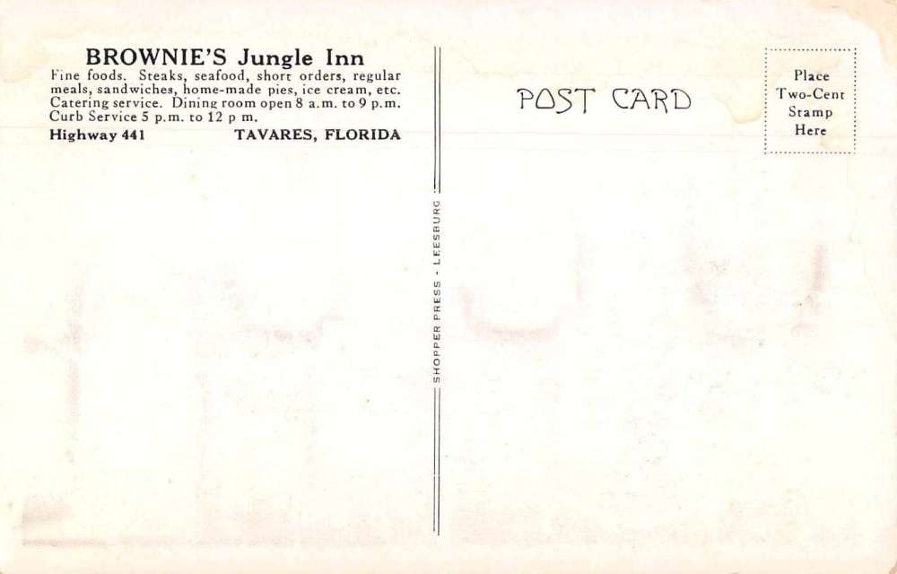 Tarvares Florida Brownie’s Jungle Inn Dining Room Vintage Postcard AA8237