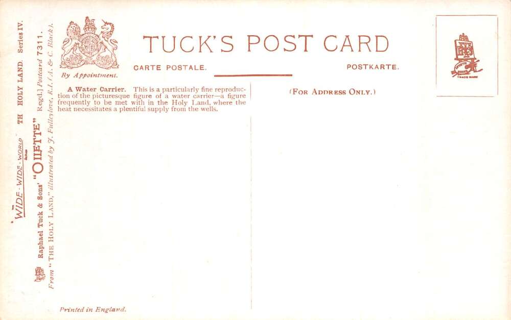 The Holy Land Water Carrier Artist Signed Tuck Oilette Vintage Postcard AA73803