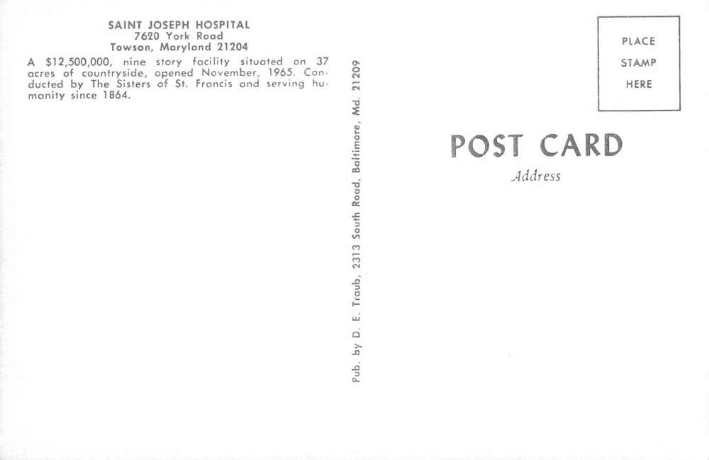 Towson Maryland Saint Joseph Hospital Birdseye View Antique Postcard K69353