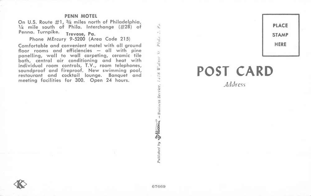 Trevose Pennsylvania Penn Motel Pool View Vintage Postcard K98014