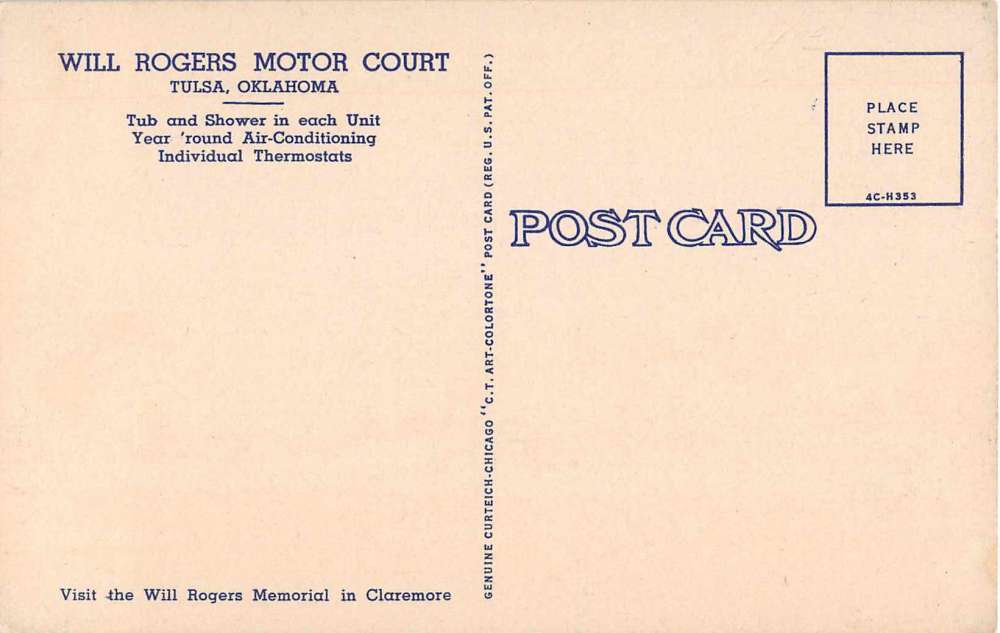 Tulsa Oklahoma view of Will Rogers Motor Court linen antique pc Y15658