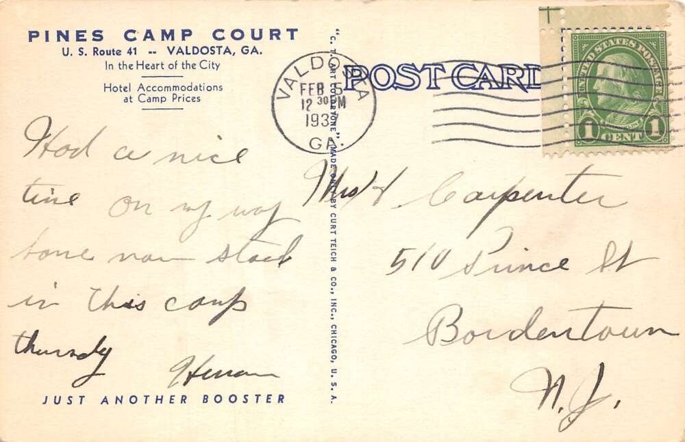 Valdosta Georgia Pines Camp Court Linen Vintage Postcard AA105372
