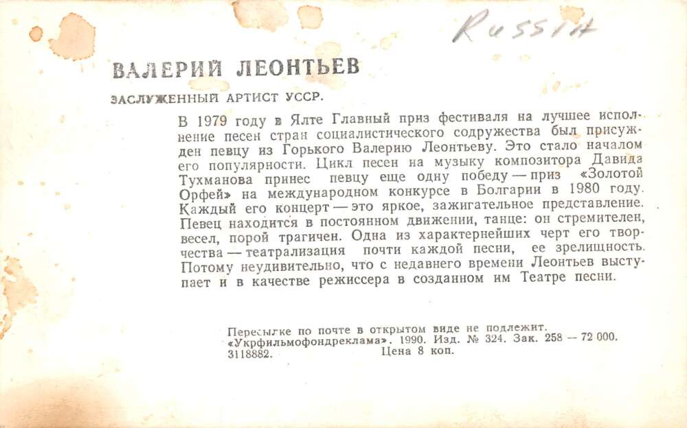 Valery Leontiev Russia Soviet USSR Singer Real Photo Non PC AA68144