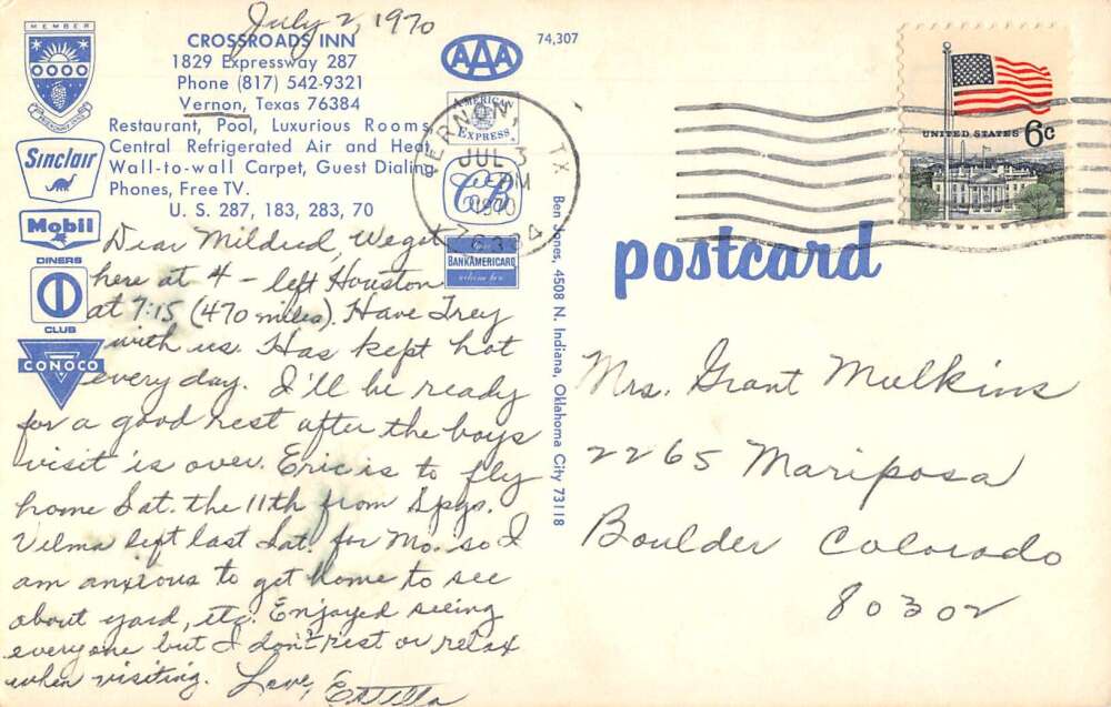 Vernon Texas Crossroads Inn Vintage Postcard AA29424