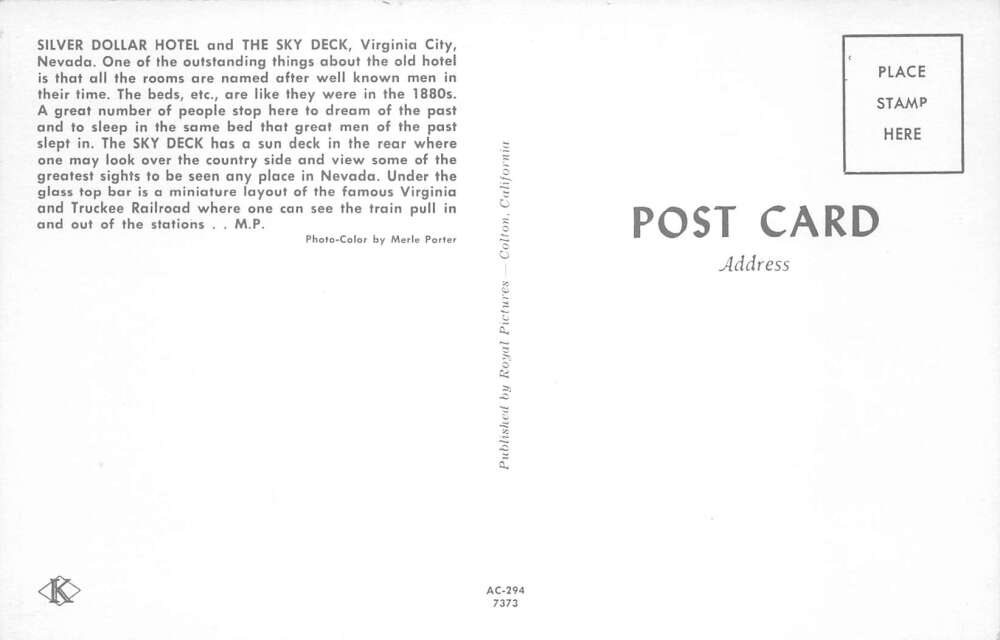 Virginia City Nevada Silver Dollar Hotel The Sky Deck Vintage Postcard AA109032