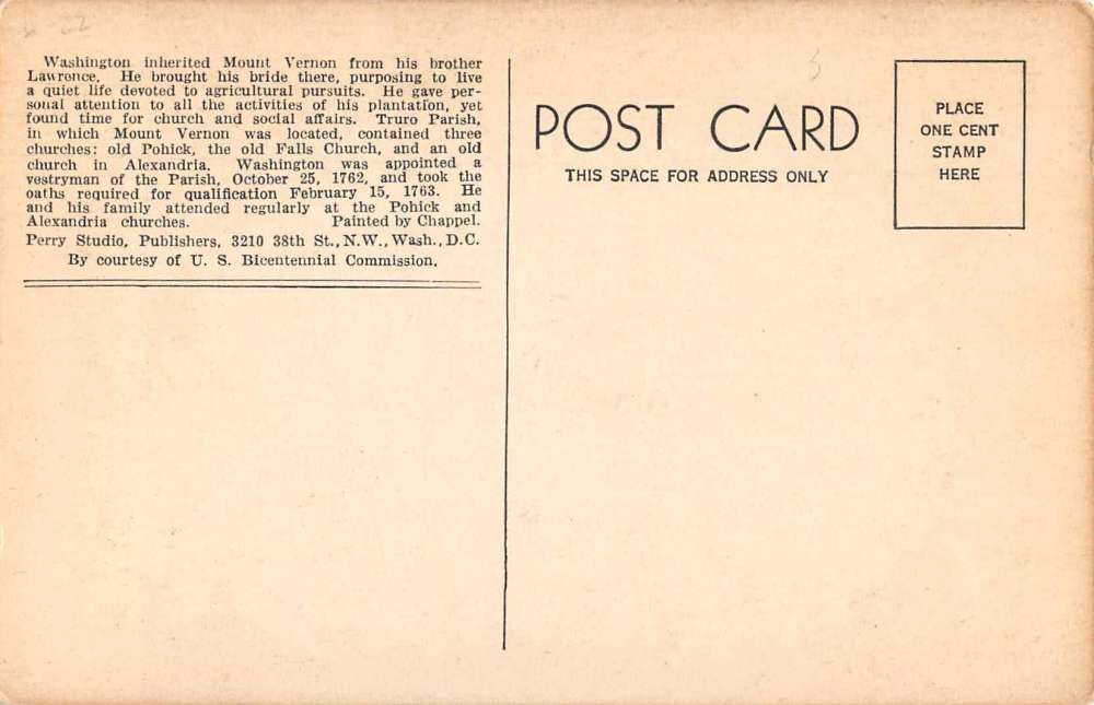 Virginia Mount Vernon Washington and Family Horse Postcard JE229410