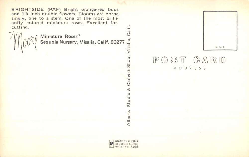 Visalia California Sequoia Nursey Mini Roses Floral Arrangement Postcard AA56217