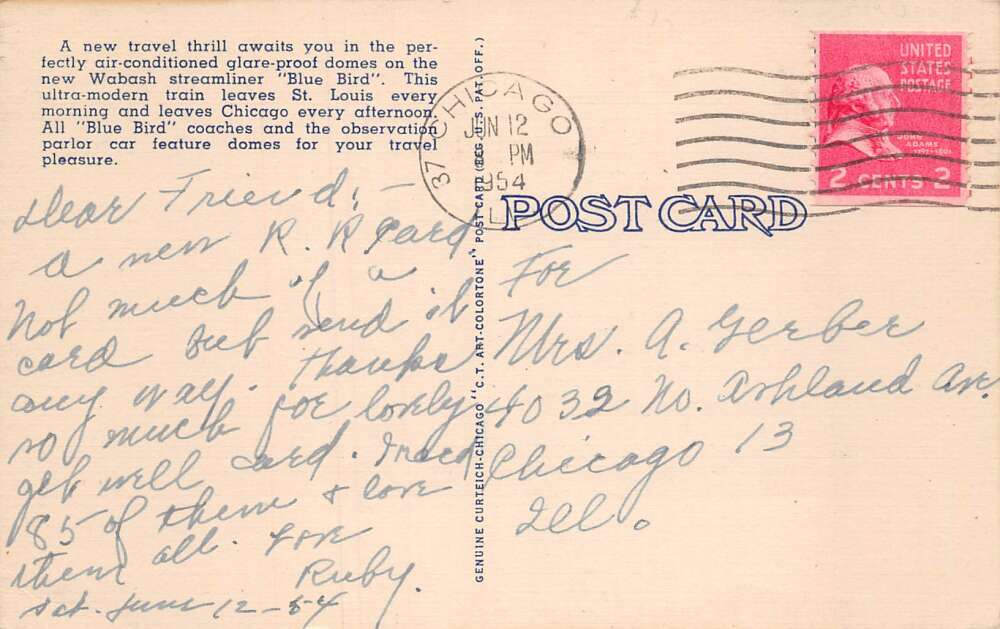 Wabash Streamliner Train Blue Bird Dome Deck Parlor Car Postcard AA72070