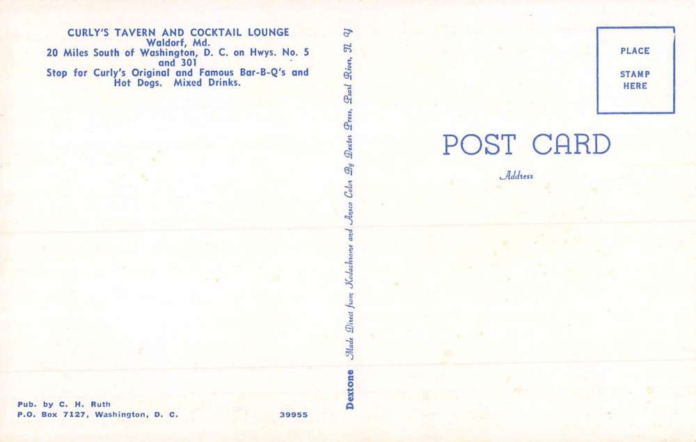 Waldorf Maryland Curlys Tavern Bar Interior Vintage Postcard K86766