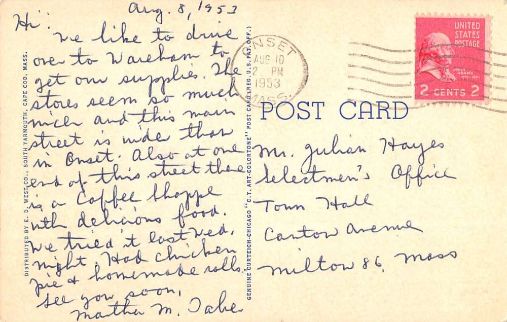 Wareham Massachusetts Cape Cod Main Street Antique Postcard K40972