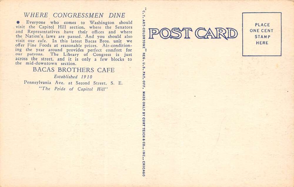 Washington D.C. Bacas Bros. Cafe, Multi-View Linen, Vintage Postcard U19612