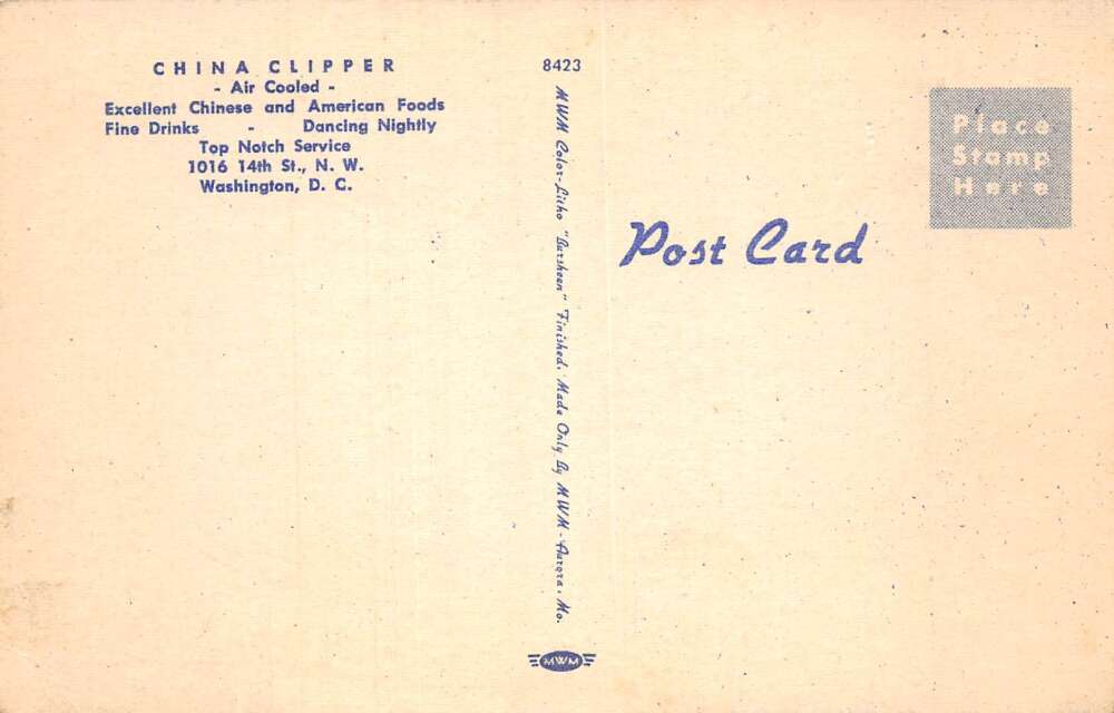 Washington DC China Clipper New Sun Chinese Restaurant Linen Postcard AA1100930