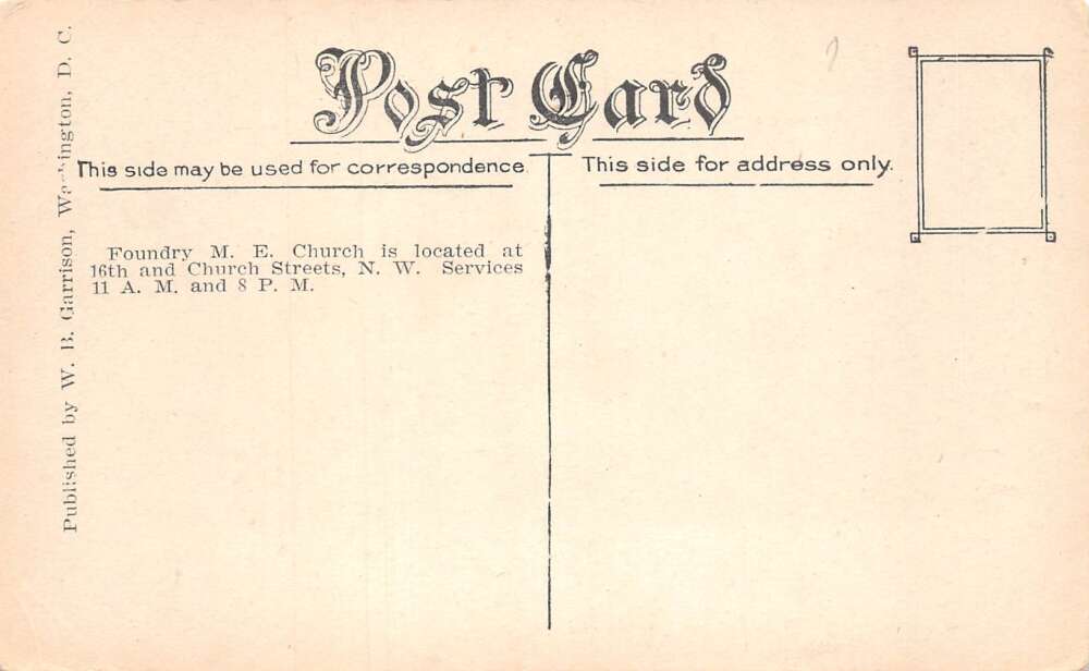 Washington DC Foundry Methodist Episcopal Church Vintage Postcard AA110704