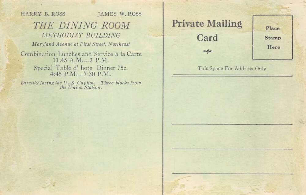 Washington DC Methodist Building Dining Room Vintage Postcard AA1100929