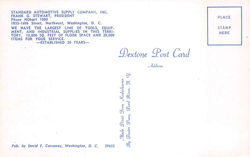 Washington DC Standard Automotive Supply Co Store Vintage Postcard AA109976