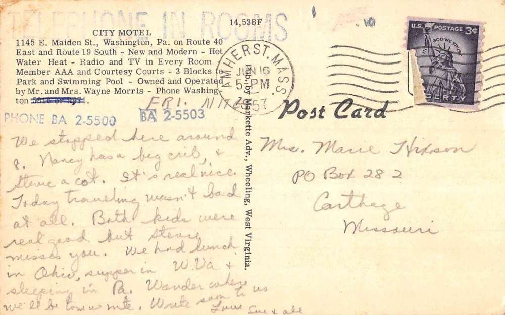 Washington Pennsylvania City Motel Street View Antique Postcard K95402