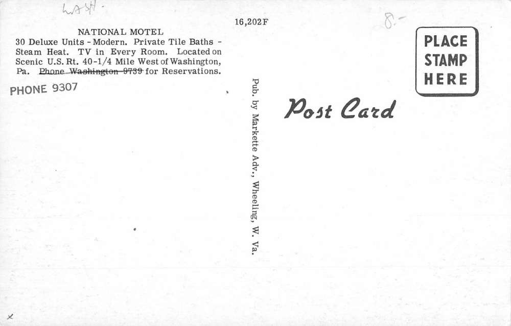 Washington Pennsylvania National Motel Street View Vintage Postcard K69598
