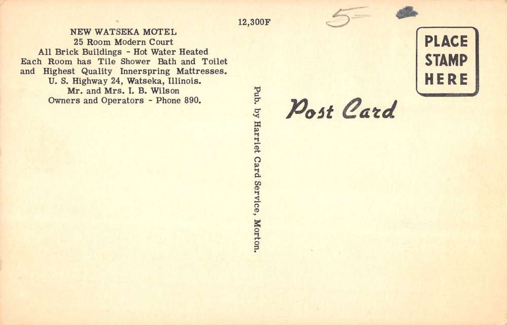 Watseka Illinois Motel Street View Antique Postcard K42886