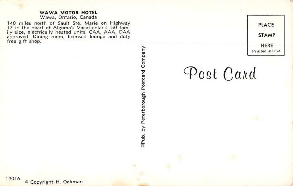 Wawa Ontario Canada Wawa Motor Hotel Birds Eye View Vintage Postcard J68660