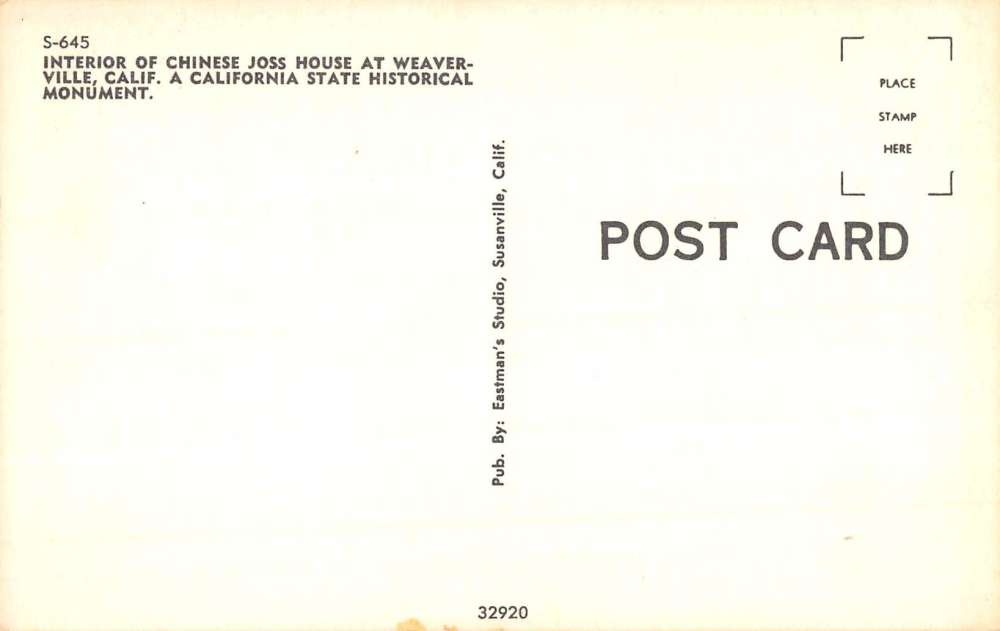 Weaverville California Chinese Joss House Interior Vintage Postcard K80403
