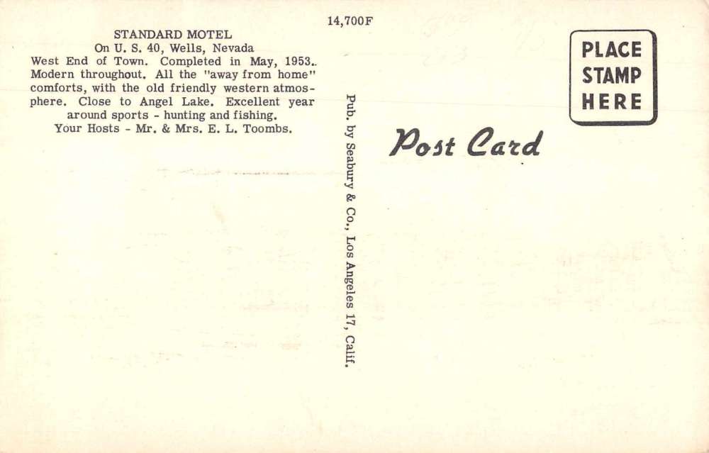 Wells Nevada Standard Motel Vintage Postcard JI657275