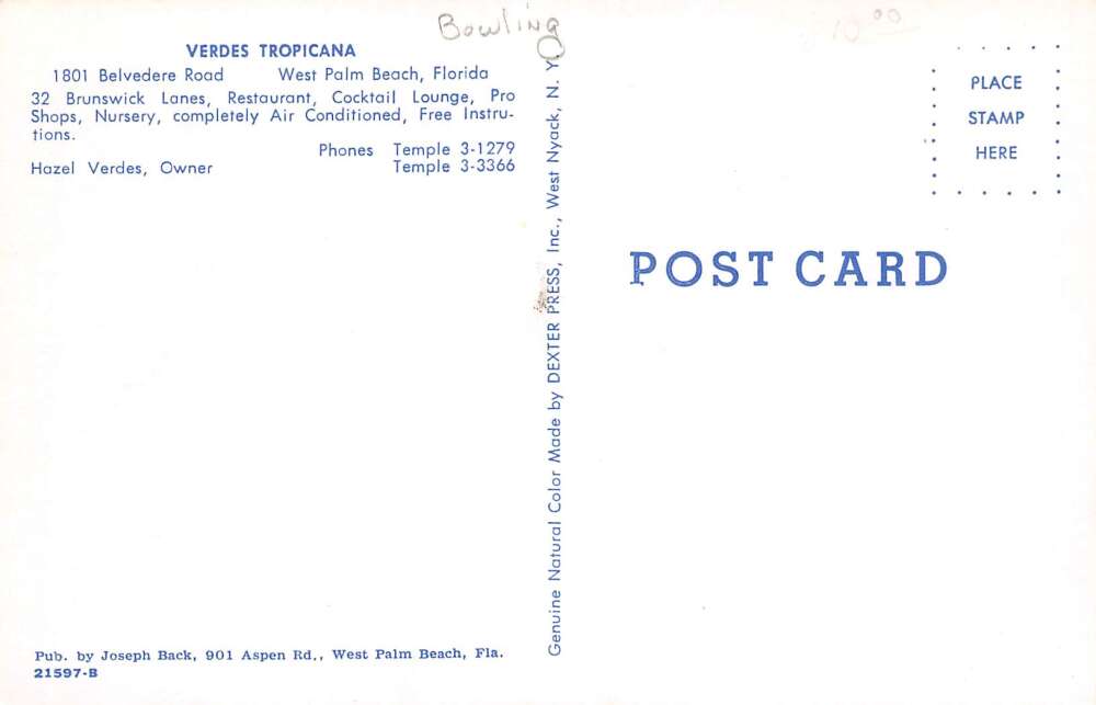 West Palm Beach Florida Verdes Tropicana, Bowling, Restaurant, & Cocktail Lounge,PC U11151