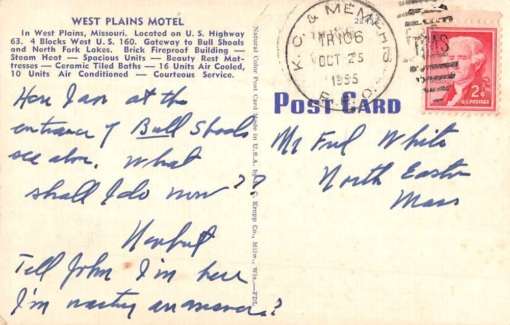 West Plains Missouri Motel Street View Antique Postcard K67030