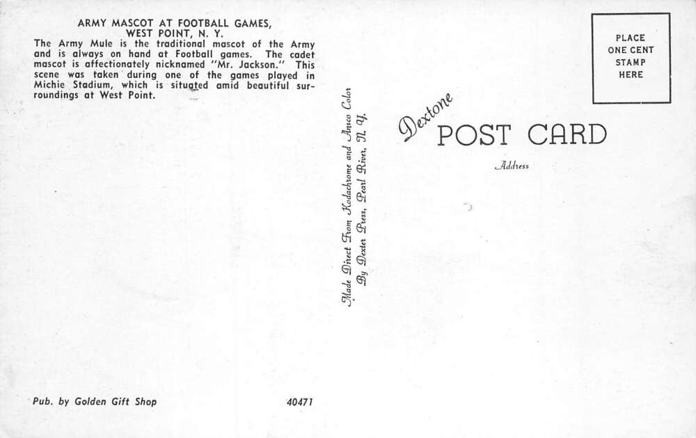 West Point New York Riding Army Mascot at Football Game Postcard AA105902