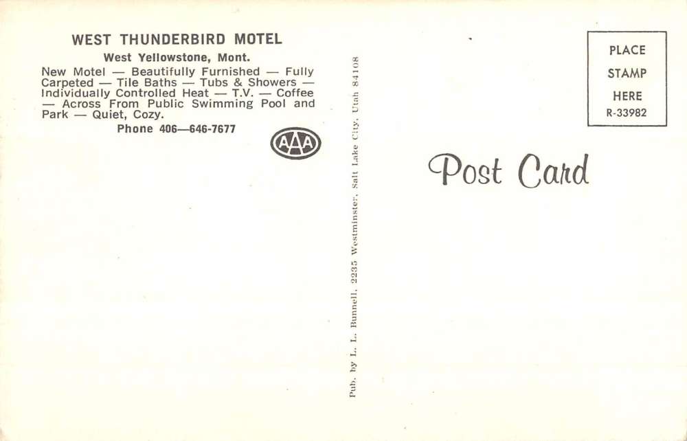 West Yellowstone Montana Thunderbird Motel Street View Vintage Postcard K78764