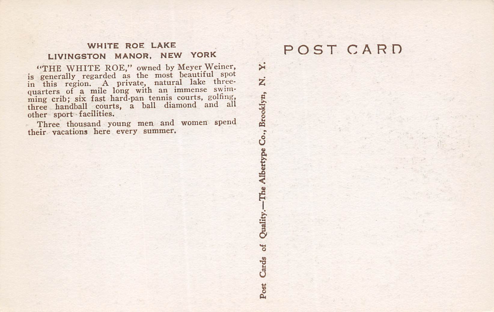 White Roe Lake New York White Roe Athletic Grounds, Albertype Co., PC U23304