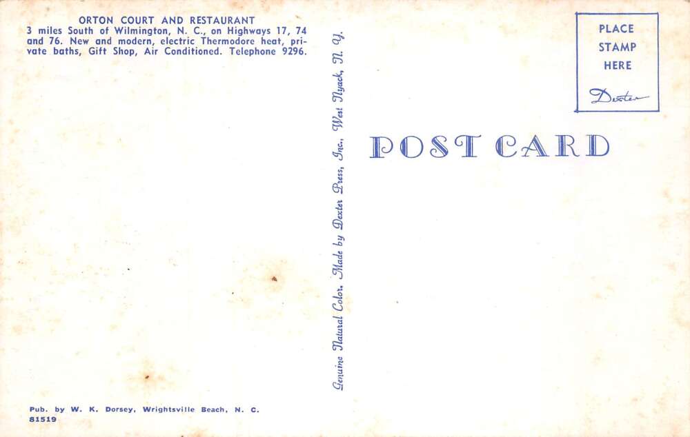 Wilmington North Carolina Orton Court and Restaurant Vintage Postcard AA73523
