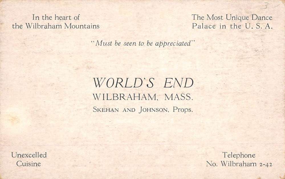 Wlbraham Massachusetts Worlds End Dondola Ball Room Antique Postcard K68497