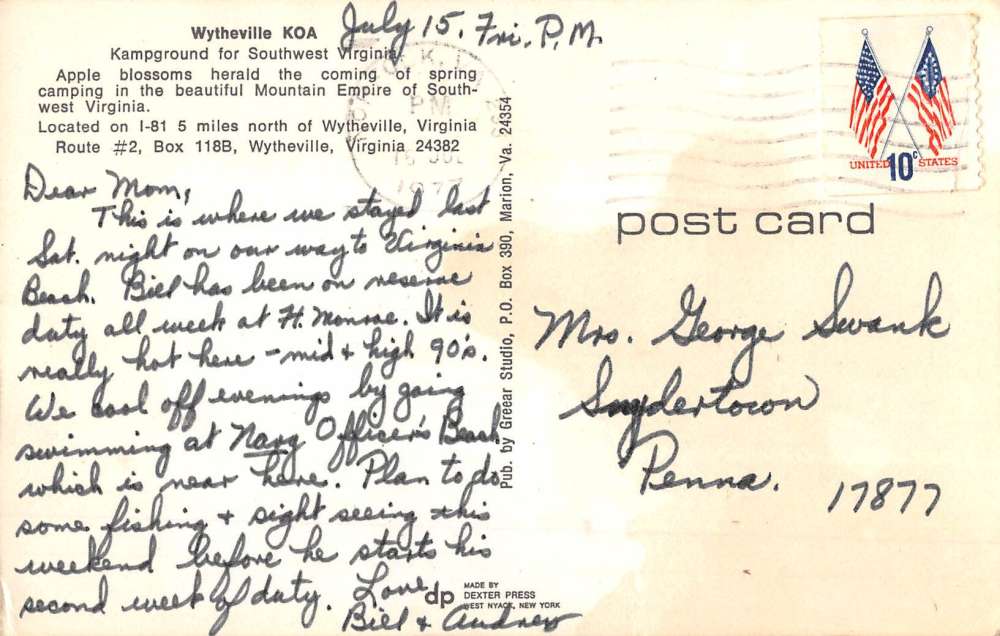 Wytheville Virginia KOA Campground Street View Vintage Postcard K61980