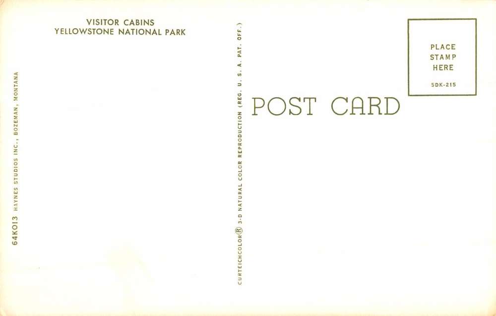 Yellowstone National Park Washington Visitor Cabins Vintage Postcard K86058