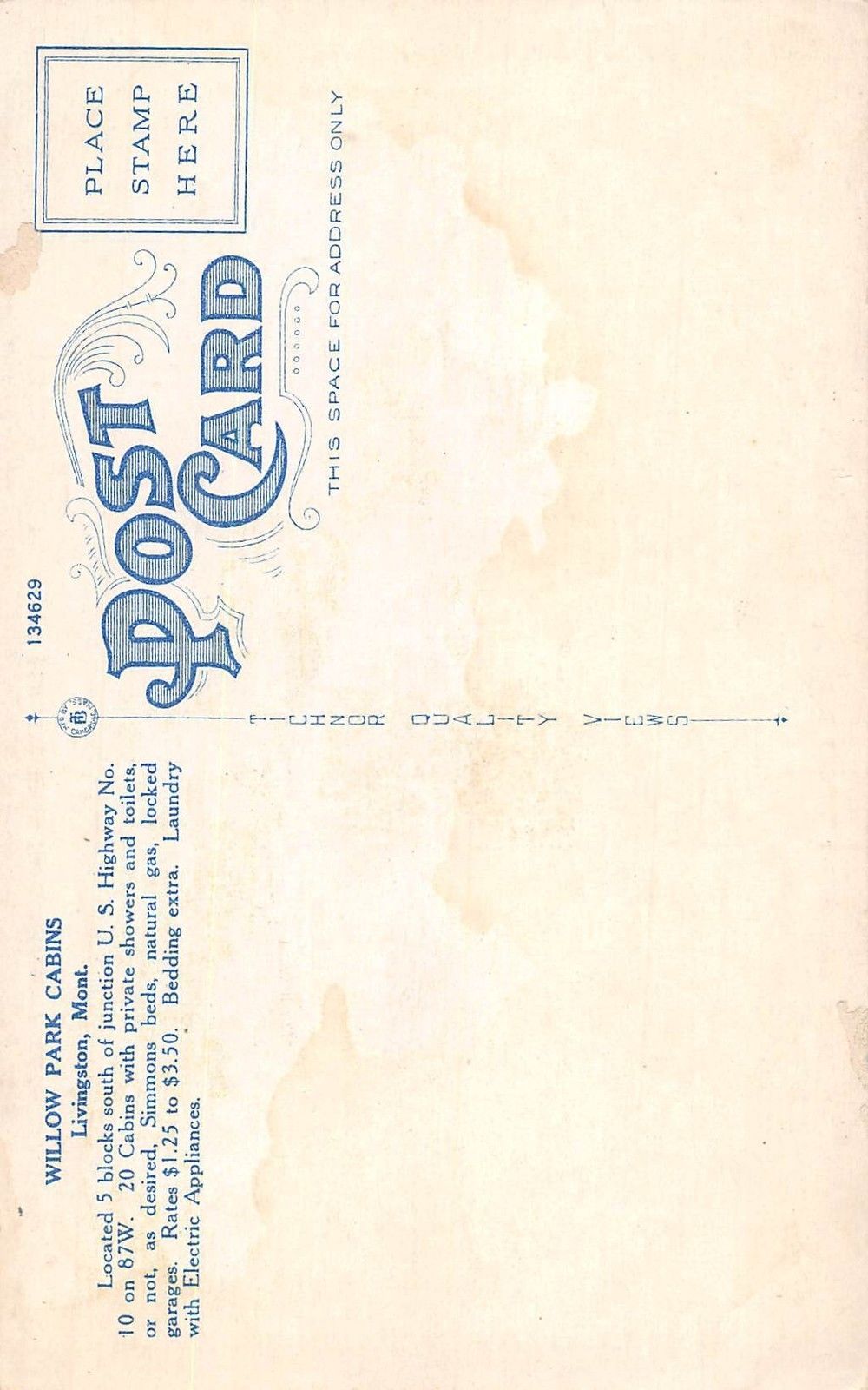 Yellowstone Park, Cabins, Liingston, Montana Antique Postcard (T2127). Good Condition.