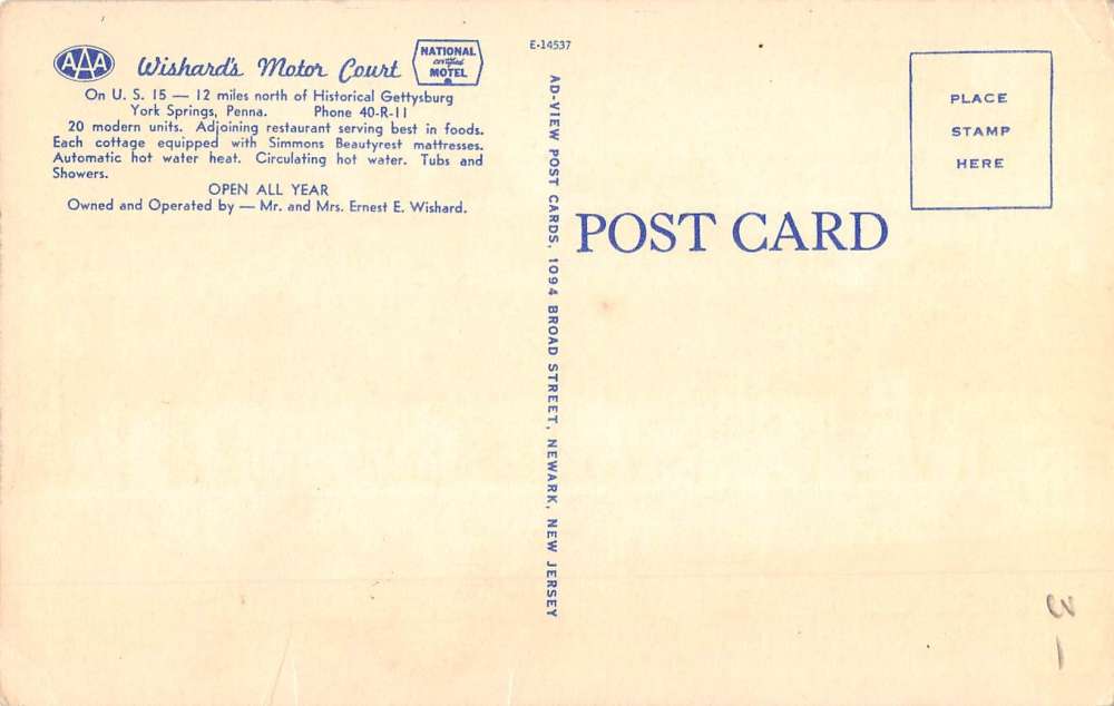 York Springs Pennsylvania Wishards Motor Court Antique Postcard K64934