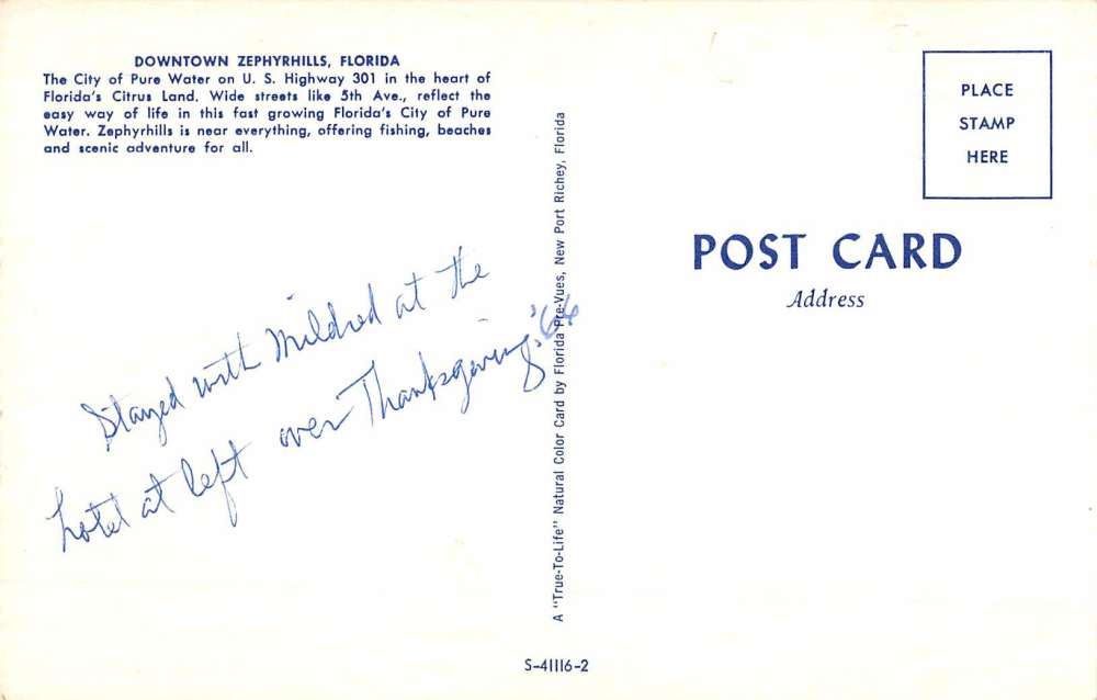 Zephyrhills Florida Downtown Street Scene Historic Bldgs Vintage Postcard K71373