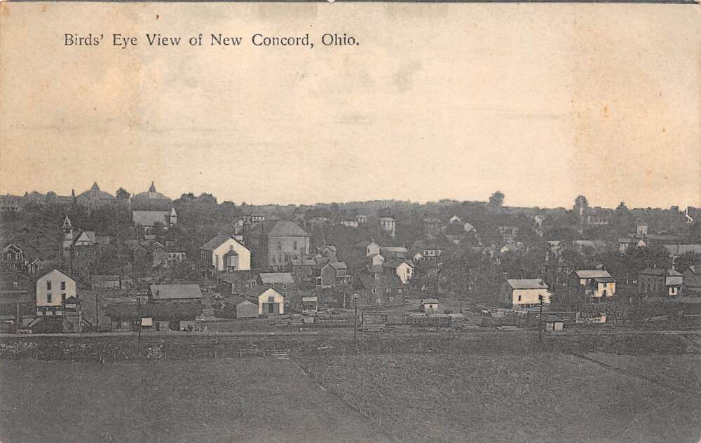 Concord Ohio Bird’s Eye View Of New Concord, B/W Lithograph Vintage PC U16120