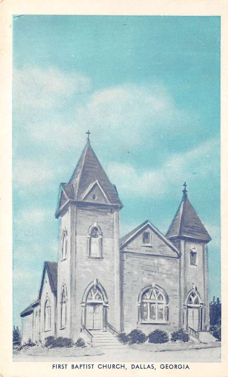 Dallas Georgia First Baptist Church, Sky Tinted, Vintage Postcard U16126
