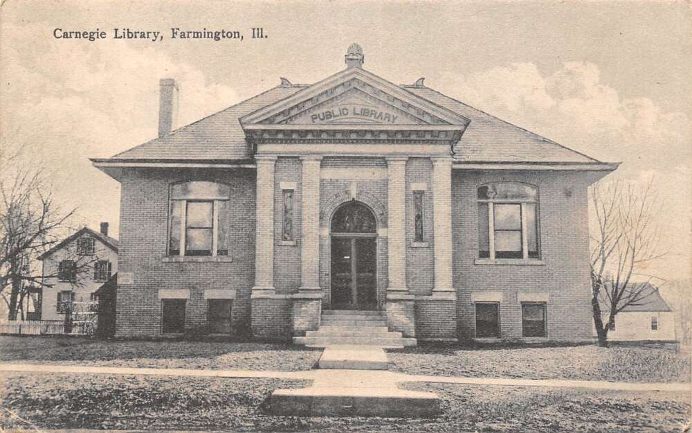 Farmington Illinois Carnegie Library, B/W Lithograph Vintage Postcard U16137