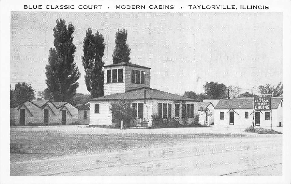 Taylorville Illinois Blue Classic Court Modern Cabins Vintage Postcard AA79283