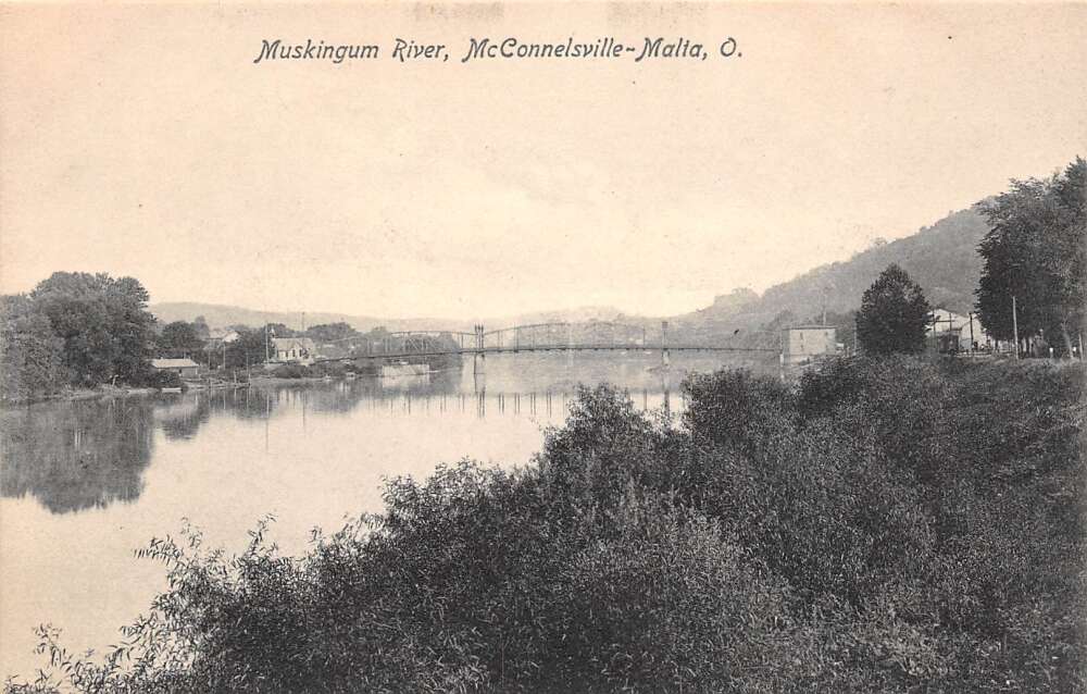McConnelsville-Malta Ohio Muskingum River, B/W Lithograph Vintage PC U16138