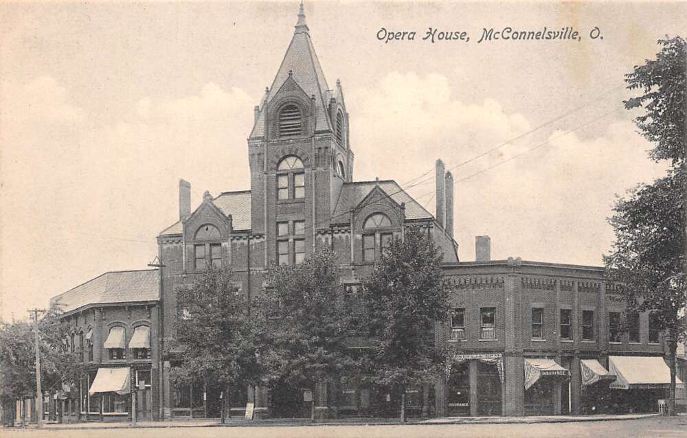 McConnelsville Ohio Opera House, B/W Lithograph Vintage Postcard U16139