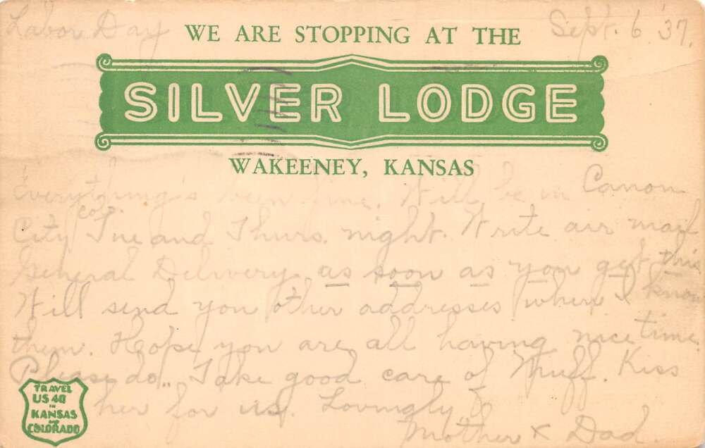 Wakeeney Kansas Silver Lodge Greetings Vintage Postcard AA107953