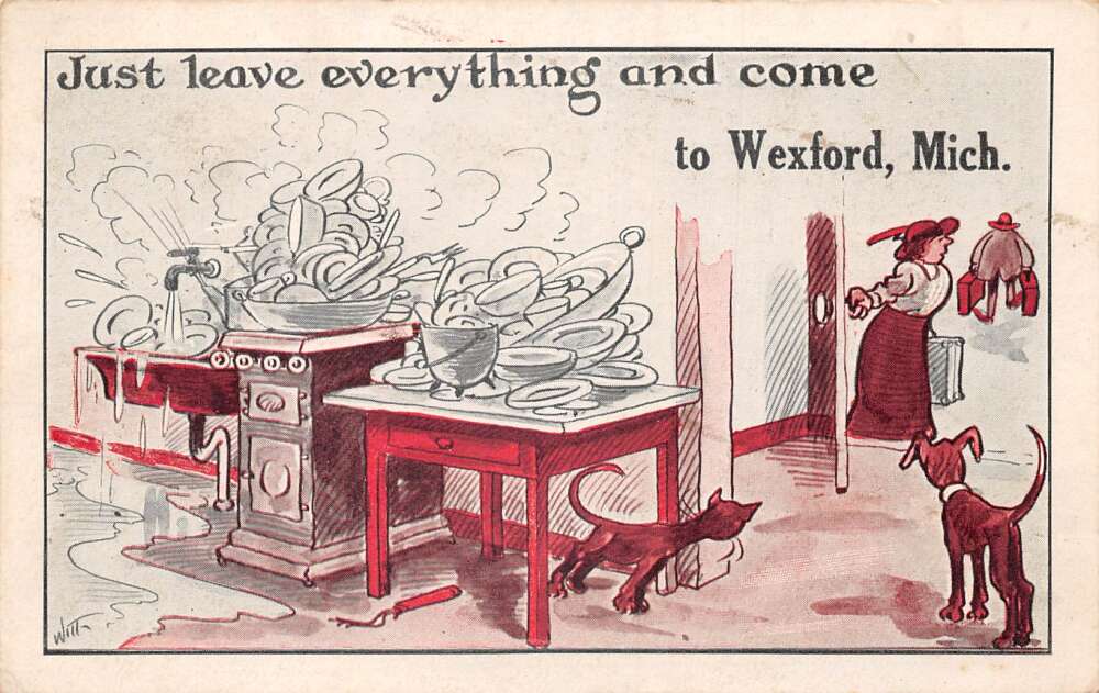 Wexford Michigan Dirty Dishes Kitchen Greetings Humor Postcard AA107955