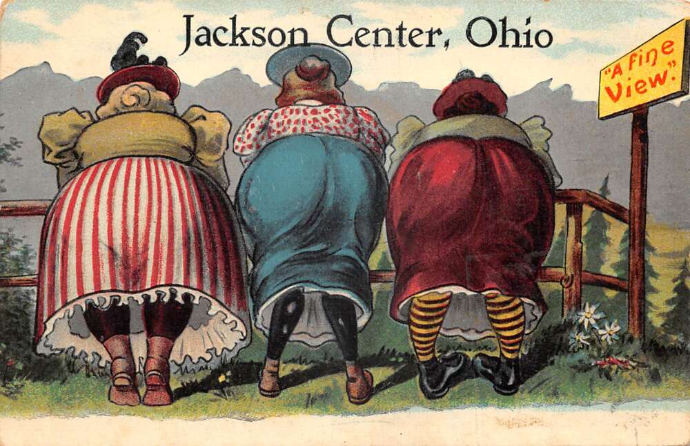 Jackson Center Ohio “A Fine View” Fat Ladies Vintage Postcard AA107957