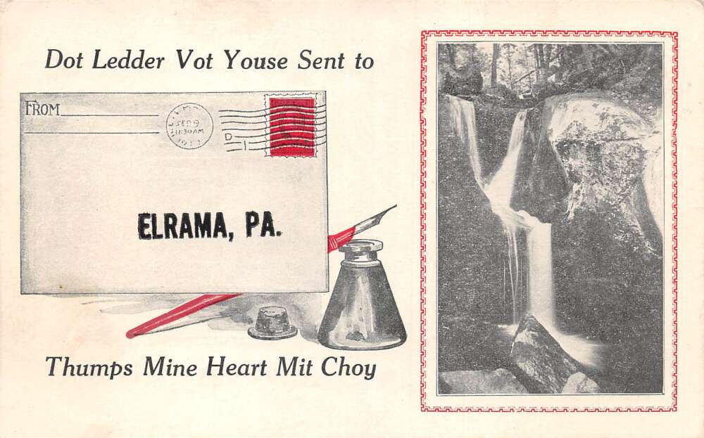 Elrama Pennsylvania Dutch Greetings Waterwall Letter Ink Well Postcard AA107959