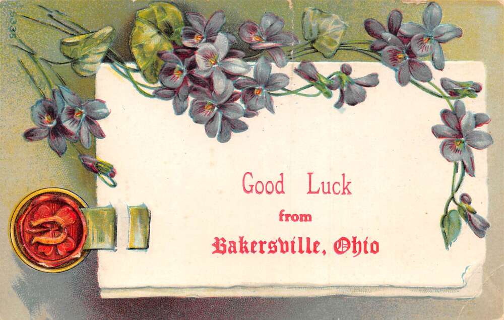Bakersville Ohio Good Luck Greetings Flowers Vintage Postcard AA107960