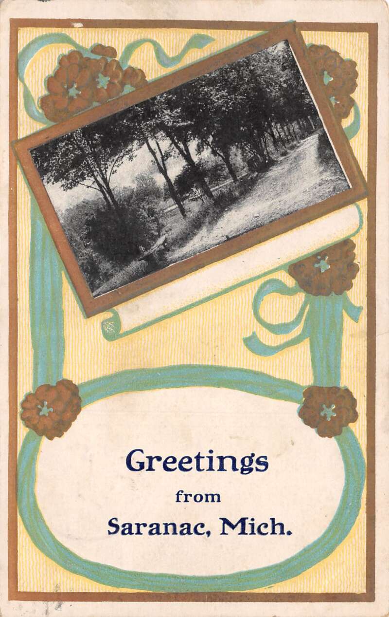 Saranac Michigan Greetings Road Scenic View Vintage Postcard AA107969