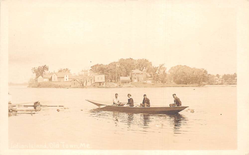 Old Town Maine Indian Island Canoeing Scenic View Real Photo Postcard AA78147